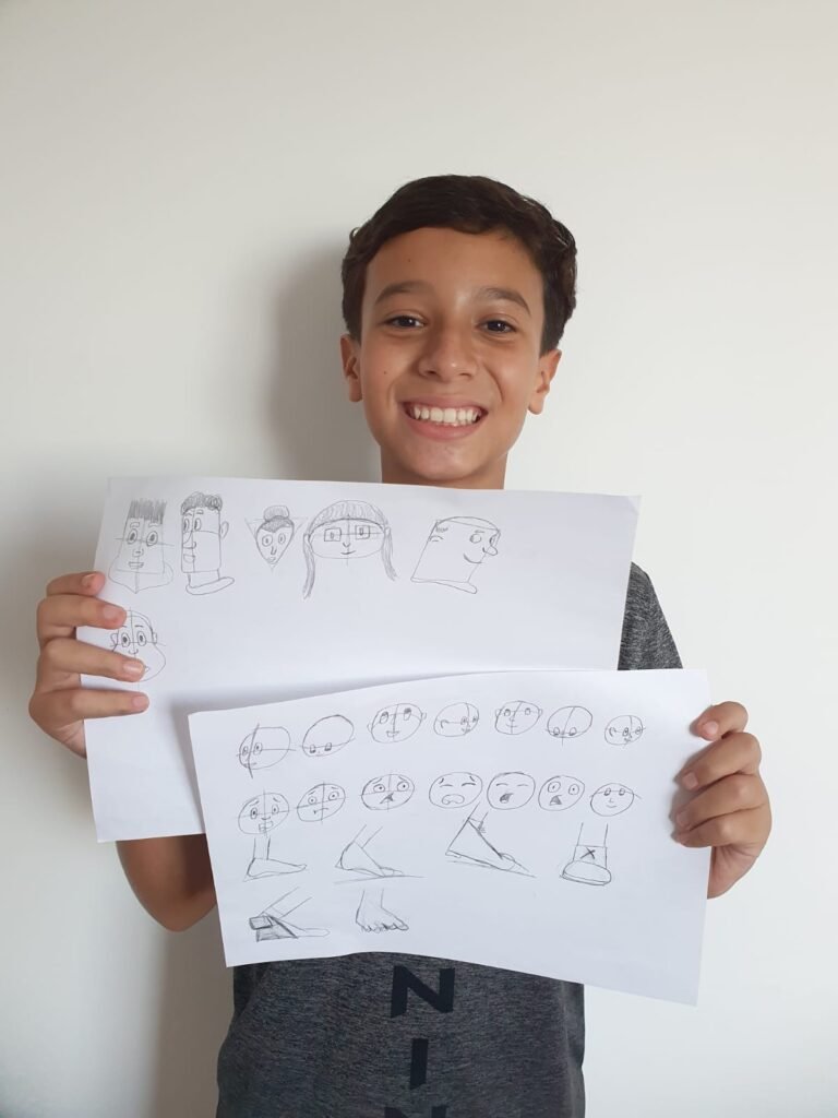 Seu filho vai precisar dos materiais básicos de desenho: Papel, lápis, borracha e lápis de cor.